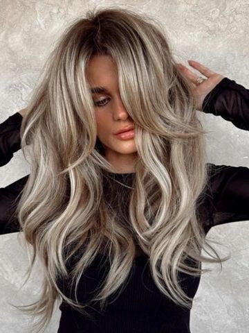 While similar to the Hollywood Glam Waves in the back, the front "money pieces" and bangs are slicked back to create an air of casual elegance. Extensions are encouraged to achieve this look.