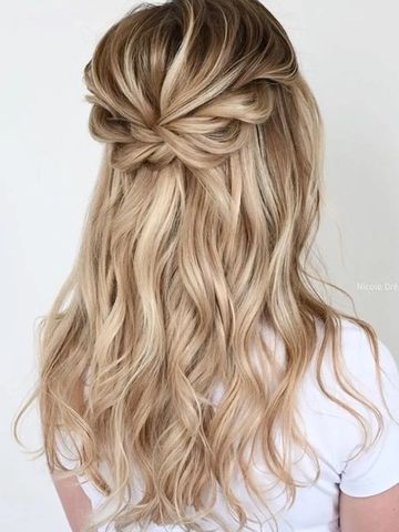 Start the style with a blowout and rollers for full volume then curl hair into perfect romantic curls..